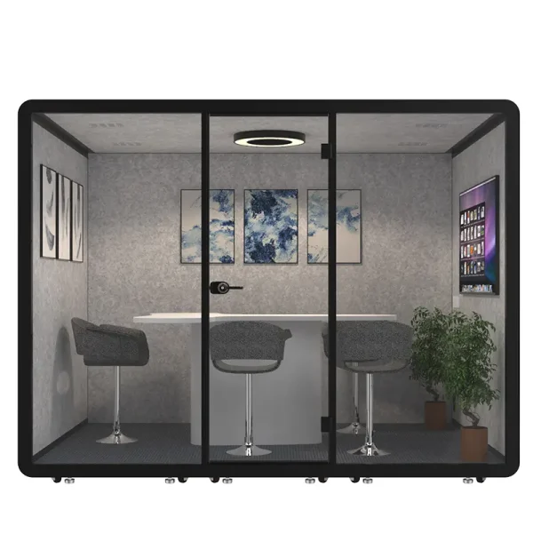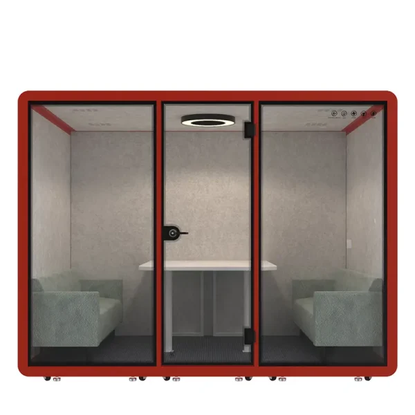ii.SOUNDPROOF & SOUND INSULATION: The wall of the office pods is composed of sound-absorbing cotton+ environmentally friendly plywood (hollow structure) and 10mm thick soundproof tempered glass.The sound insulation and noise reduction index meets the design expectations.